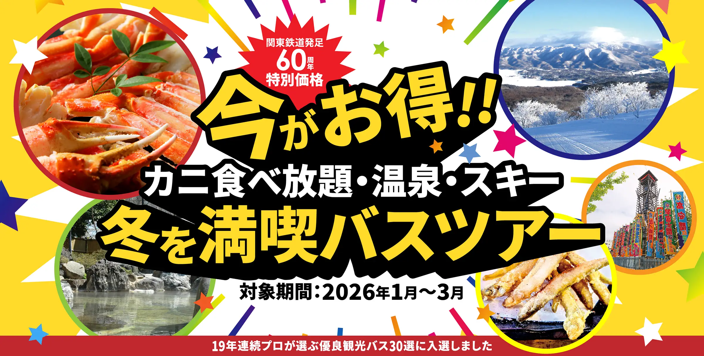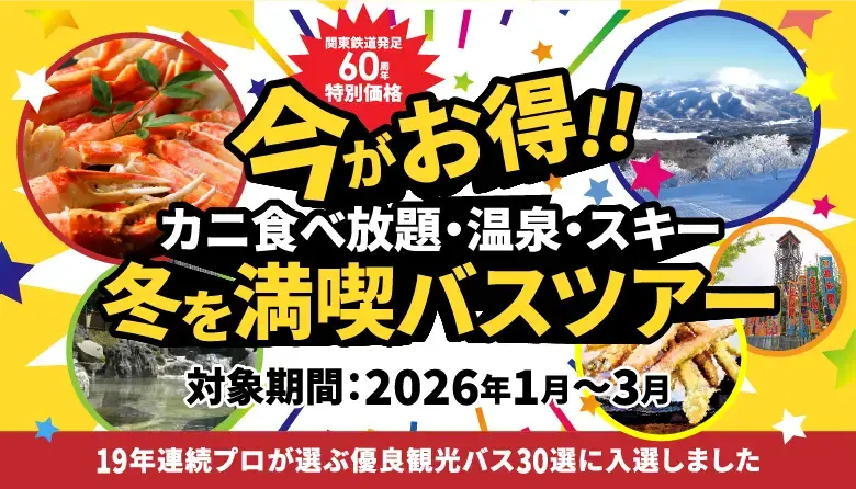 | 1月20日出発ルート | 関鉄観光バス本社前〈9:20発/20:35着〉→荒川沖駅東口〈9:50発/20:05着〉→牛久駅東口〈10:05発/19:50着〉 |