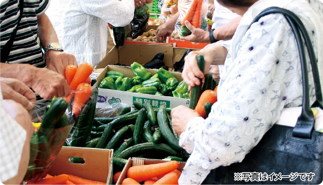 色とりどりの新鮮野菜を目の前に、どれを詰めようか選ぶ時間も楽しみのひとつ。袋いっぱいに詰め込めば、