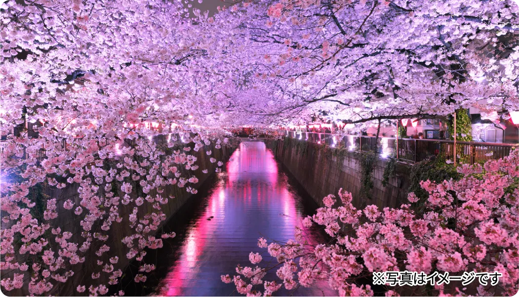 夜桜のやわらかな灯りが、温泉街にやさしい春の雰囲気を運んでくれます。のんびり歩きながら楽しめる、心安らぐ夜桜散策です。