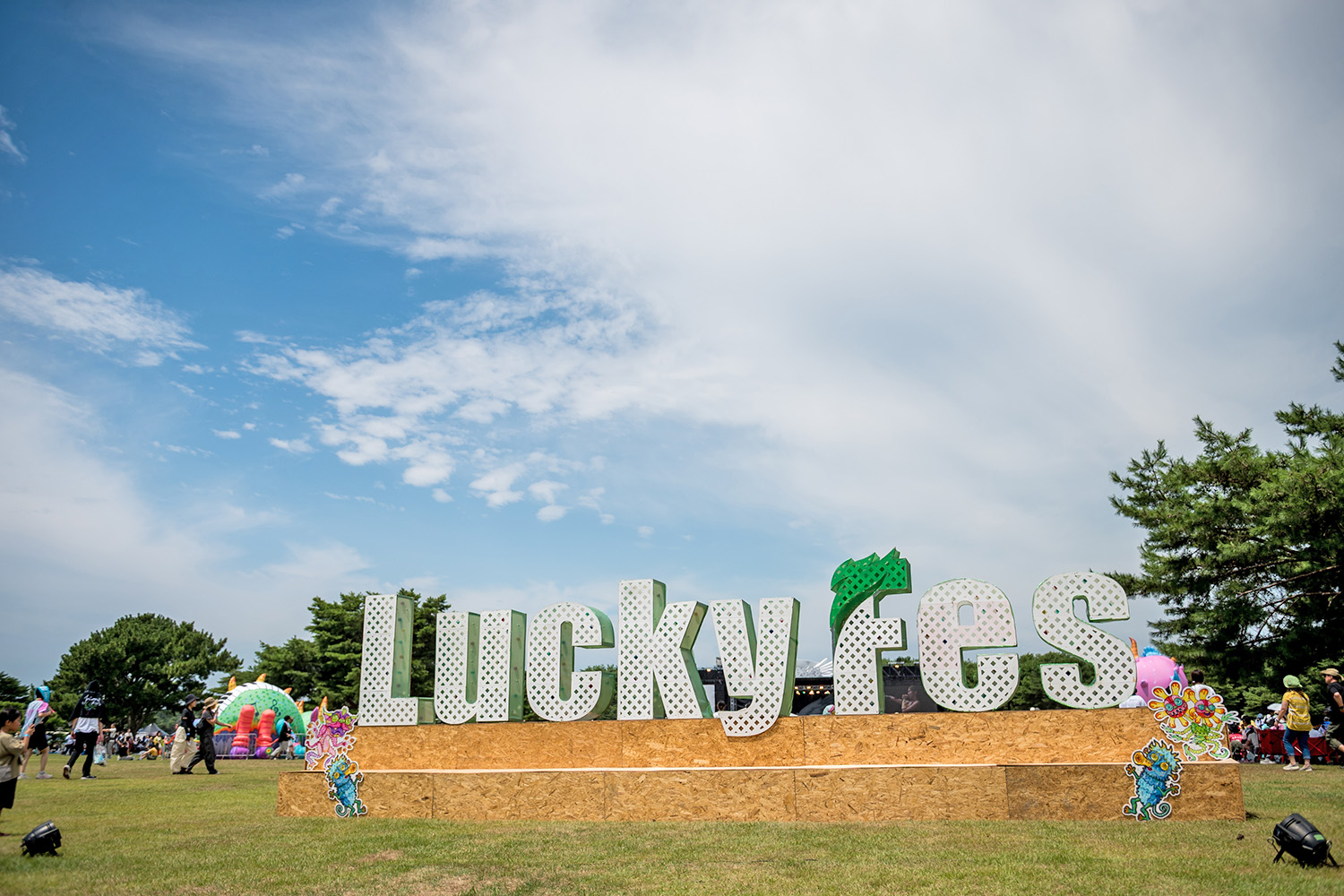 「夏休み、アジア最大のテーマパーク型フェスへ」をテーマに開催した4回目のLuckyFesは、アーティスト、フレンズ、スタッフの皆様のお陰で、大成功でした。開幕前夜の集中豪雨で機材が故障し、テントが吹っ飛び、駐車場が冠水するなど大変な事態でしたが、夜を徹して復旧作業を行い予定通りアーティストの皆様とフレンズをお迎えできました。