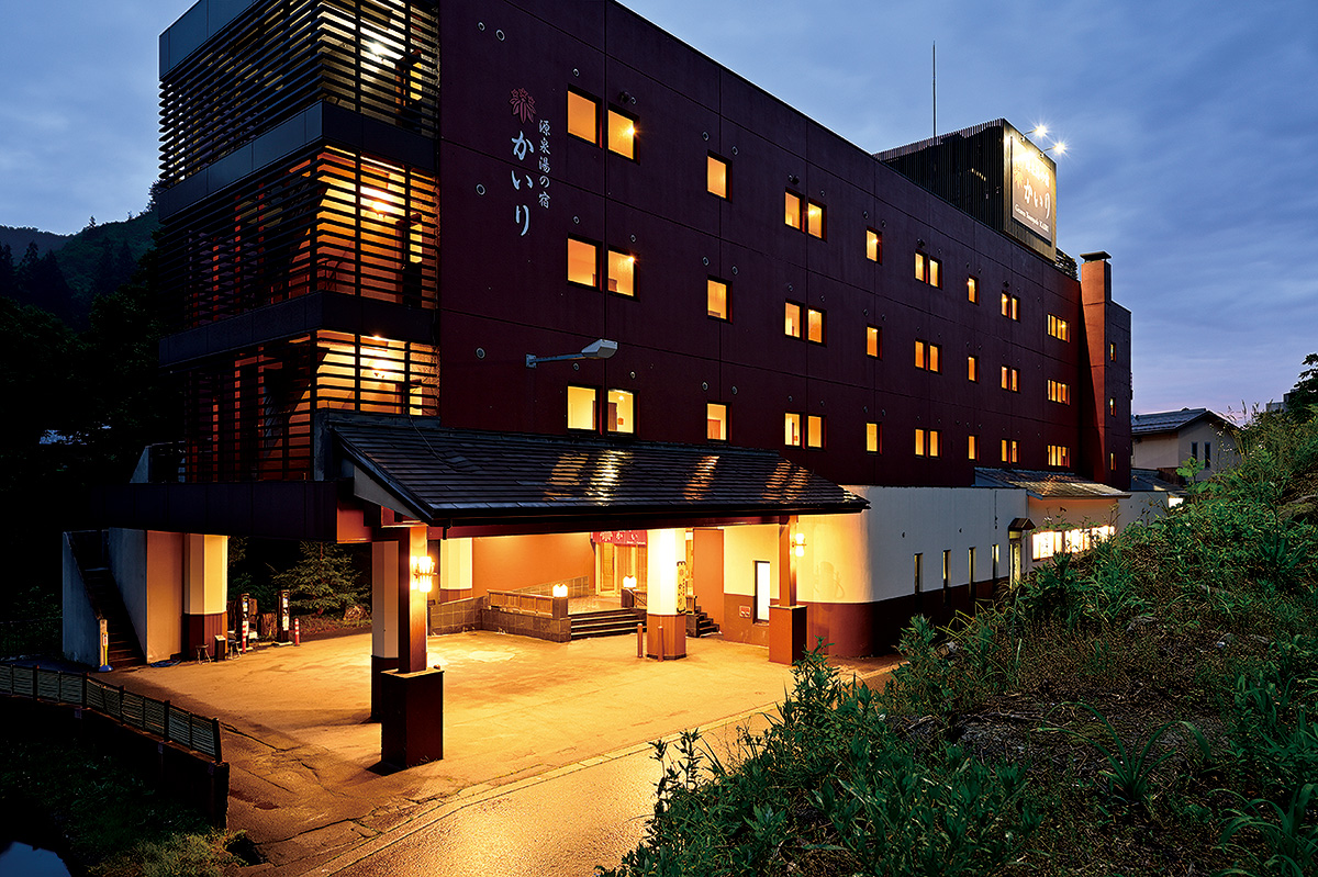 「源泉湯の宿 七福の湯 かいり」は新潟県魚沼市大湯温泉にある温泉宿で、3本の源泉を使った7つの趣の異なる浴槽「七福の湯」が自慢です。