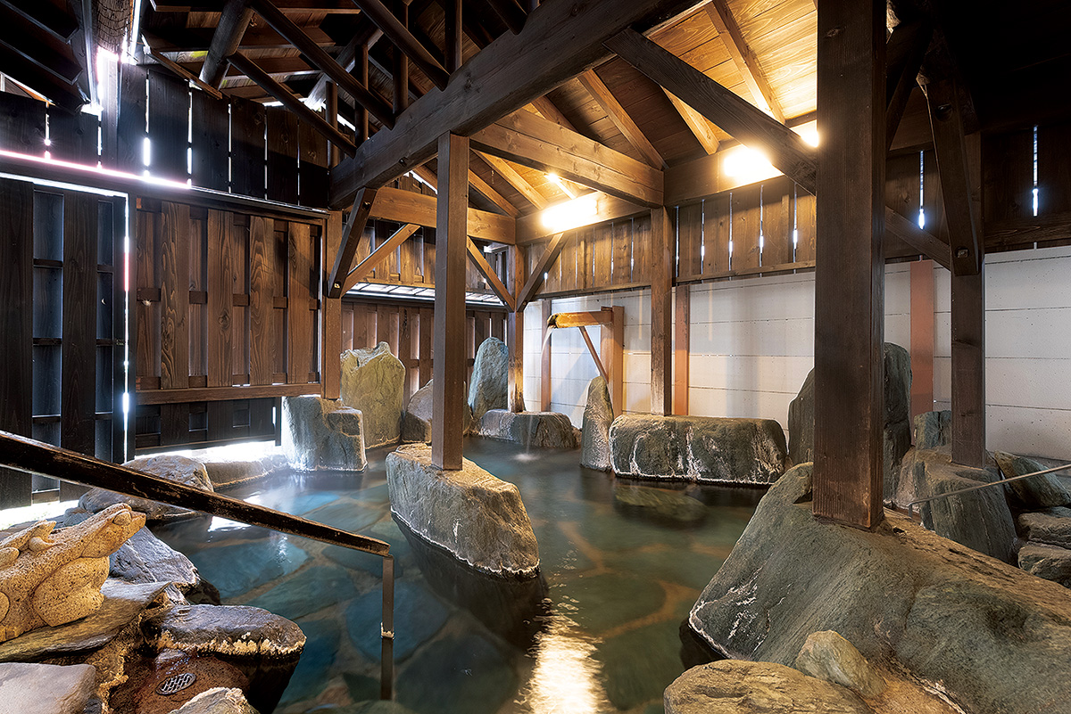 庭の湯や川の湯の大浴場で、男女入れ替え制のため全ての浴槽を楽しめます。