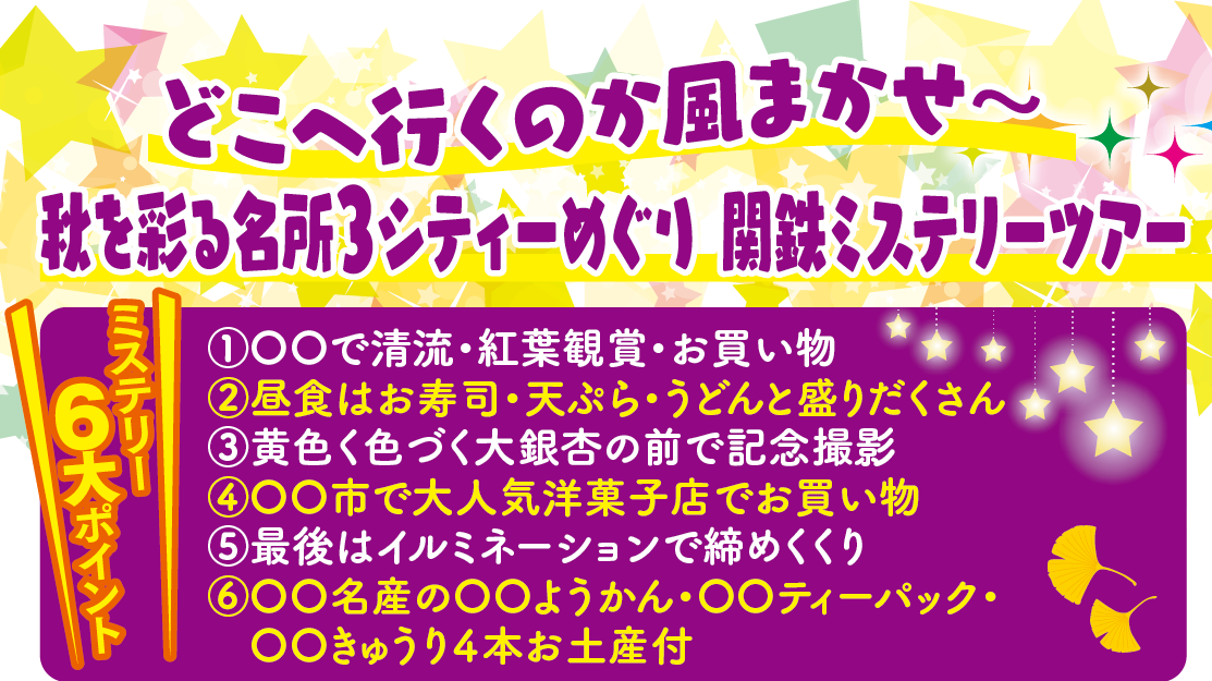 どこへ行くのか風まかせ〜秋を彩る名所3シティーめぐり 関鉄ミステリーツアー